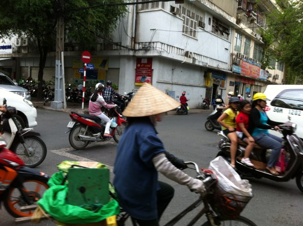He nodded and followed a passing cyclo with his eyes. A schoolgirl in an ao dai rolled her bicycle over his toes and he didn’t flinch.